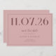 Um simples cartão moderno. Personalize este design de cor rosa-rosa para-chic para ter sua data de casamento, nomes e detalhes.