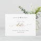 Anuncie sua data de casamento com este lindo casamento, salve o cartão de data. O Script escrito manualmente moderno detalha completamente. Estilo simples e limpo. Design branco e preto com um toque de ouro com Script e tipografia de bloco em matiz ouro na frase "Salvar a Data". Área atrás para os detalhes e nomes do seu cheio, assim como área para o site de casamento ou mensagem para seus convidados (isto é, "Mal posso esperar para vê-lo lá!"). O mesmo design na apresentação do cartão postal também está disponível.