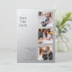 Simples Casamento Salve a data Fotografia Convites apresenta quatro de suas fotos favoritas, três na frente e uma no verso com o texto "Salvar a data" em uma elegante tipografia moderna de escrita em um fundo de cinza prateado. Simples, moderno e elegante para a sua celebração do dia do casamento. Elaborado por ©Evco Studio www.zazzle.com/store/evcostudio