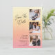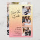 Simples Casamento Salve a data Foto Convites apresenta quatro de suas fotos favoritas, três na frente e uma no verso com o texto "Salvar a data" na elegante tipografia moderna de escrita de caligrafia. Simples, moderno e elegante para a sua celebração do dia do casamento. Elaborado por ©Evco Studio www.zazzle.com/store/evcostudio