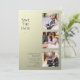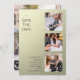 Simples Casamento Salve a data Fotografia Convites apresenta quatro de suas fotos favoritas, três na frente e uma no verso com o texto "Salvar a data" em uma elegante tipografia moderna de escrita em um fundo de cinzeiro bege. Simples, moderno e elegante para a sua celebração do dia do casamento. Elaborado por ©Evco Studio www.zazzle.com/store/evcostudio