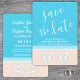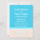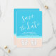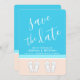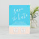 Anuncie a alegre notícia do seu casamento na praia e noivado, com monograma personalizado único. Toda a redação desta modelo é simples de personalizar. (DICA DE IMAGEM: Uma maneira fácil de centralizar uma foto exatamente como você deseja é recortá-la antes de carregá-la no site do Zazzle.) O pêssego pastel e o design azul-turquesa apresentam tipografia branca brilhante e chinelos monogramas bonitos numa praia minimalista abstrato moderna. A caligrafia com script de estilo manuscrito é feita para se parecer com o céu escrevendo acima do oceano. Este cartão de anúncio de noivado tropical na moda é uma maneira elegante de informar a família e os amigos da sua próxima celebração de casamento de destino no paraíso. Parabéns para a noiva e o noivo!