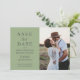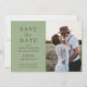 Trendy elegante casamento de fotos salve o cartão de anúncio de data com o moderno roteiro de tipografia e sua imagem personalizada sobre um fundo simples verde sage. ++++++++++ Fácil de personalizar com a sua imagem de noivado e detalhes! ++++++++ Você tem a possibilidade de mudar as cores do script para corresponder à sua paleta de cores de casamento.