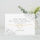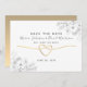 Coração simples, elegante, de folha de ouro em combinação com um fundo floral branco puro, de folha de ouro vintage faux. Casando Adorável e minimalista - Casamento Salve o Convite de Data com o moderno roteiro de caligrafia.
