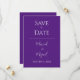 Profundo e elegante roxo "Salve a Data" que é perfeito como prelúdio para o seu convite formal para todos os seus convidados. Feito com lindas fontes em branco simples e elegante. Perfeito para sua ocasião especial. Um lembrete perfeito para todos os seus convidados.
