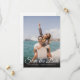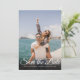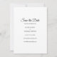Este simples elegante. o cartão de salve a data com foto de roteiro moderno apresenta a sobreposição da sua foto especial com um salve a data de roteiro acima dos seus nomes, data e local em texto branco. O verso tem detalhes adicionais para salvar a data, incluindo o endereço do seu site de casamento. Criado por Thisisnotme