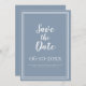 Anuncie seu próximo evento com nosso moderno azul e branco Salve o anúncio do casamento da Data! O pacote de convites apresenta um design minimalista com uma borda dupla de quadros em branco nítido sobre um fundo NEGRO DUSTY. A formulação tradicional proporciona sofisticação eterno mas moderna. Personalize o design de casamento com seu primeiro e sobrenomes e data em letras brancas e roteiro nítidos. A parte traseira da placa corresponde a azul estável.