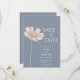 Design minimalista simples, com a cor d'água, flor silvestre e tipografia de tendência em fundo azul empoeirado. Esta design é perfeita para o seu simples e elegante casamento do Boho. O texto pode ser facilmente personalizado para um único design único para o seu dia especial.