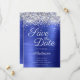 Crie a sua reunião familiar ao estilo moderno, salve as datas. Bordos superiores brilhantes e brilhantes, folheados, emparelhados com uma folha metálica azul esfregada, azul-safira, clara a escura. Toda a textura brilhante, faísca, metálica e brilhante é criada por uma imagem gráfica digital impressa. O estilo e a cor da fonte podem ser personalizados. Cor azul clara e marinho.