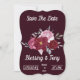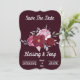 Este marron vermelho horizontal salvando o cartão de data é perfeito para um casamento. O elegante, mas rústico design apresenta flores rosa de de aquarela cintilante. Edite o texto com seus detalhes.