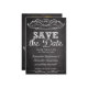 Convite de casamento com visual de quadro de giz em ardósia do conjunto correspondente apresenta fundo cinza carvão escuro com efeito de quadro negro de ardósia e escrita com aparência de desenho manuscrito a giz branco em primeiro plano. O motivo de redemoinho decorativo adiciona um toque de elegância casual. Todos os Designs Copyright © www.CustomInvitesOnline.com