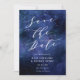 Este casamento chic salva a data com um fundo azul escuro no céu, tipografia elegante e um roteiro de caligrafia moderno que diz "Salvar a Data". Esta design seria perfeita para um casal interessado em astronomia e espaço - ou simplesmente para qualquer um que tenha um casamento noturno! Consulte a coleção para coordenar itens.