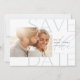 Anuncie a data do seu casamento com estes cartões salve a data bonitos e modernos, com uma fotografia horizontal ou orientada para a paisagem, com "salvar a data" sobreposta em letras claras e neutras do pastel. Personalize com seus nomes, data do casamento e local.