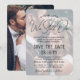 Anuncie as alegres notícias da celebração do seu aniversário com convites "Nós Ainda Fazemos" personalizados e únicos de sobreposição de fotos para salvar a data. As duas fotos e todo o texto são fáceis de personalizar para qualquer aniversário. É perfeito também para um casamento sequencial, cerimônia de renovação de votos ou recepção de primeiro aniversário. Pode incluir todos os detalhes importantes, como data do casamento, local e site. (DICA DE COLOCAÇÃO DE IMAGEM: Uma maneira fácil de centralizar uma foto exatamente como você quer é cortá-la antes de fazer o upload para o site da Zazzle.) O design moderno em preto e branco apresenta 2 fotos de sua escolha, caligrafia de letra manuscrita na moda e tipografia elegante no estilo de máquina de escrever. Parabéns ao casal em sua celebração de aniversário!