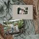 Barato impresso personalizado Guardar os cartões com fotos de Data com modelos simples para personalização. Este na moda apresenta um simples design de camada de fotos com uma borda de galhos botânicos, folhas e galhos. Personalize-o com a sua fotografia, data de casamento e os nomes da noiva e do noivo. O verso tem espaço para fotos adicionais e detalhes do casamento. Use as ferramentas de design para editar as fontes de texto e as cores, adicionar mais fotos e criar um casamento exclusivo para salvar o anúncio de data.