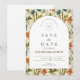 A sophisticated botanical design featuring rich green foliage and soft ivory blooms, framed within a timeless arched layout. The deep, nature-inspired tones bring a sense of depth and refinement, while the clean typography keeps the overall look elevated and effortless.