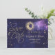 Sol celestial de ouro, lua e estrelas em fundo roxo de aquarela. Salve a data que pode ser personalizada com seu nome. Selecione o botão "personalizar" para alterar o estilo, a cor e o tamanho da fonte.