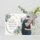 Procurando uma foto exclusiva para salvar o cartão de data? Olhe para isto! Este produto apresenta uma foto de solteiro com um quadro geomérico de ouro e eucalipto.