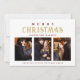 Sophisticated Simple Classic Calligraphy 3 Multi Photo Merry Christmas in Fake Gold and Dark Red Holiday Card with Envelope as a Christmas wedding Save the Date.