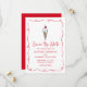 Adicione um pouco de doçura aos seus anúncios de casamento com este cone de sorvete branco salve o cartão de data. Com um cone de sorvete desenhado à mão, tocado com uma cereja e um quadro de espiral vermelho, este design é perfeito para casamentos de verão, amantes de sobremesa ou casais que compartilharam um primeiro encontro sobre o sorvete. O layout nostálgico, porém divertido, combina um script ousado com o tipo limpo para realçar seus detalhes de casamento, enquanto a paleta de cores vibrante vermelha e branca traz um toque inspirado no retrô. Uma maneira charmosa e memorável de deixar os convidados saberem marcar seus calendários para seu dia especial.