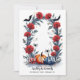 The Save the Date wedding card with a Halloween theme combines a watercolor style with a gothic and spooky design, perfect to surprise your guests. The design features a gothic arch decorated with red dried chrysanthemums, along with pumpkins, ghosts, bats, and spiders, creating a unique composition that evokes the Halloween season.
