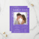 Anuncie seu dia de casamento com esta Foto estelar Salve o Anúncio de Data. Salve o design de data com um fundo estrelado e posicionamento de fotos para o casal feliz com embelezamentos de trilha estelar. Adicione sua foto e detalhes do casamento para personalizar.