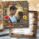 Cartões RSVP de casamento legal e únicos. O Steampunk foi criado com engrenagens douradas, amarelas e de metal vermelho, flores e um fundo de madeira rústica. Carregue a sua imagem favorita na área personalizar e edite o texto no verso para adicionar as suas opções de refeições de recepção de casamento.