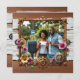 Cartões RSVP de casamento legal e únicos. O Steampunk foi criado com engrenagens de metal-ouro, flores cor-de-rosa e um fundo de madeira rústica. Carregue a sua imagem favorita na área personalizar e edite o texto no verso para adicionar as suas opções de refeições de recepção de casamento.