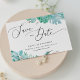Suculentas florais de hortelã em aquarela Save the Date com letra elegante para casamento de inverno.