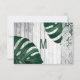 Bandas tropicais elegantes, rústicas e country da praia tropical suíça Queijo Monstera em madeira branca rústica e renda com falso papel impresso de folha de ouro verão Cartão de casamento Save-the-Date. Este design clássico e sofisticado é perfeito para o casal de competição de tendências e na moda. Personalize com sua própria mensagem na frente, assim como um monograma personalizado inicial no verso. Todas as impressão de fotos.