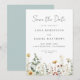 This design features a watercolor border of wildflowers in shades of gold, red, blue, and green. Perfect for spring and summer weddings.