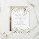 This design features a watercolor border of wildflowers in shades of gold, red, blue, and green. Perfect for spring and summer weddings.