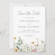 This design features a watercolor border of wildflowers in shades of gold, red, blue, and green. Perfect for spring and summer weddings.