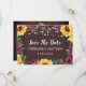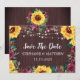 Estes cartões salve a data apresentam girassol rústico e design de rosa de burlu com fundo de madeira e luzes de cordas. Personalize-os com o seu próprio texto. Produtos correspondentes também disponíveis.