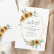 Planeje o seu casamento perfeito nesta temporada com nossos cartões salve a data do tema girassol brilhante. Apresentando a floração de girassol e a estrutura geométrica do efeito ouro, este cartão pode ser facilmente personalizado para sua ocasião especial, como um chá de panela, festa de noivado, festa de aniversário, aniversários, reuniões de família, e qualquer ocasião especial que você tenha alinhado nos próximos meses. Edite o texto clicando no botão "Personalizar" acima e clique no botão azul "Personalizá-lo" para reorganizar o texto, altere as fontes e as cores de fundo se desejar. Mais importante, se precisar de ajuda, envie-me uma mensagem usando a "bolha de fala" em cima da sua tela e farei tudo o que puder para ajudar com este cartão e com os outros itens da coleção.