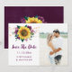 Estes cartões salve a data apresentam girassol de cor rústica e design floral roxo de ameixa com luzes de cordas. Eles fazem parte de uma coleção que inclui um cheio de convites para casamento e artigos de papelaria. Personalize-os com o seu próprio texto e fotografia. Visite nossa loja para ver o cheio de itens que você pode personalizar para o seu casamento.