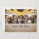 Foto personalizada de casamento de girassol rústico salve o cartão de data com uma colagem fotográfica com girassóis e luzes de cordas em um fundo vintage. Personalize facilmente esta foto rústica, salve a data com suas imagens e detalhes de casamento, incluindo um site de casamento.