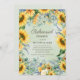 Os girassóis amarelos elegantes e o eucalipto verde-sábio deixam um convite de Janto de ensaio.