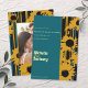 Announce your wedding date with this bold modern teal blue and gold sunflower save the date card. The striking design features artistic sunflower silhouettes with integrated teal accents and luxe striped patterns on the front, with your engagement or pre-wedding photo on the back. Simply upload your favorite photo to create a personalized announcement that's uniquely yours. Perfect for couples seeking a contemporary alternative to traditional calligraphy and floral designs. Fully customizable with your names, date, and location details. Ideal for coastal, outdoors, country, or contemporary weddings with a fresh and elegant aesthetic. Part of a complete collection including invitations, save the dates, thank you cards, RSVPs, and matching wedding décor.