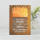 Uma bela praia ao pôr do sol é enquadrada pela madeira rústica com o reflexo do pôr do sol. As luzes de cordas no topo fornecem um brilho adicional. A tipografia do script Brush anuncia Salvar a Data. Os próximos detalhes da data do casamento podem ser facilmente personalizados.