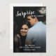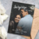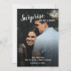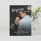 Foto de noivado do casamento "Salve a data" com texto, "Surpresa estabelecemos uma data!" Adicione sua foto e seu próprio texto dando aos amigos e à família informações sobre quando e onde você vai se casar, assim como seu site de casamento.