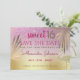 Folha de na moda, elegante, única, dourada, que incorporou a silhueta flamingo em combinação com um adorável fundo rosa brilhante e dourado e com folhas gigantes de palma tropical de ouro. Trendy, moderno, adorável aniversário de 16 anos - Salve o convite de Data. Você pode personalizar facilmente todos os elementos de texto ou gráficos - aproveite e faça a melhor combinação possível!
