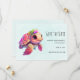 Guarde o cartão de ponto com uma ilustração fofa de uma tartaruga marinha. Corpo rosa e casca com cobertura floral. Parece feliz e adorável.