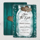 Casamento de teal russo salve o cartão de data apresentando um jarro de pedras com luzes de cordas e corações de burpas contra um fundo de madeira de celeiro. Personalize facilmente este belo casamento rústico, salve a data online. Itens correspondentes disponíveis para complementar este casamento local salvem a data.