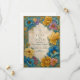 This bold botanical design features richly saturated teal, gold, and blush florals arranged in an ornate vintage frame. The textured parchment background adds an elegant antique feel, giving the layout a timeless and artistic quality. Detailed illustration, vibrant color, and soft shading create a dramatic floral border that beautifully highlights your wedding details. Personalize the wording to craft a luxurious keepsake that reflects your celebration’s unique style.