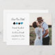 Você e sua namorada vão estar casandos em Las Vegas e querem compartilhar as boas notícias com a família e os amigos. Personalize este glamouroso faux glitter azul e este traje preto tematizado salve a data com seu texto personalizado, uma foto de noivado e um código QR para direcionar os convidados para o seu site para informações de planejamento e muito mais.