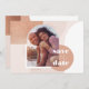 Tendy e foto moderna salve o design da placa de data. O rosa de ouro roxo moderno, e a paleta de cor de tom bronzeado, criam uma aparência na moda moderna. "Salvar a data", em conjunto com a caligrafia moderna das cartas manuais. Arranjo de design geométrica de tendências com o quadro de fotos arquivadas para exibir sua foto especial. O verso apresenta uma design geométrica ousada e moderna.