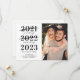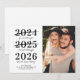 Cartão engraçado de salvar a data com uma foto sua e do seu parceiro, o ditado '2020 primeira tentativa, 2021 segunda tentativa, 2022 terceira vez é a venceda', seus nomes, data e o local do seu casamento futuro.