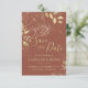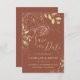 Reserve A Data Terracotta e Dourada Casamento Floral Moderno de P