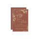 Este design apresenta pedras e folhagem douradas num estilo de desenho de linha moderno e mínimo. A fonte dourada correspondente apresenta serifes clássicos e uma tipografia cursiva escrita à mão. A parte de trás também tem o buquê de pedras no canto inferior esquerdo com bastante espaço para adicionar texto adicional.
